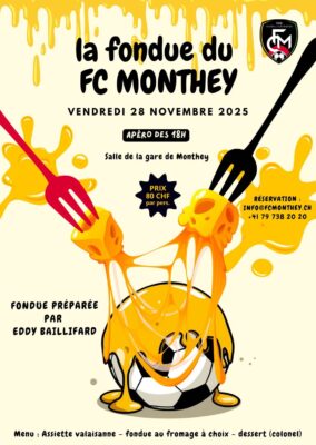 EvènementsSoirée Fondue du FC Monthey !il y a 4 semainesLe Rendez-vous Incontournable Réservations : E-Mail: info@fcmonthey.ch : +41 79 738 20 20