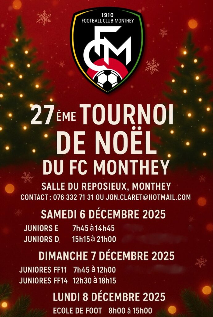 EvènementsSouper de soutien 2026 du FC Monthey!il y a 1 moisRéservations : info@fcmonthey.ch ou +41 79 738 20 20