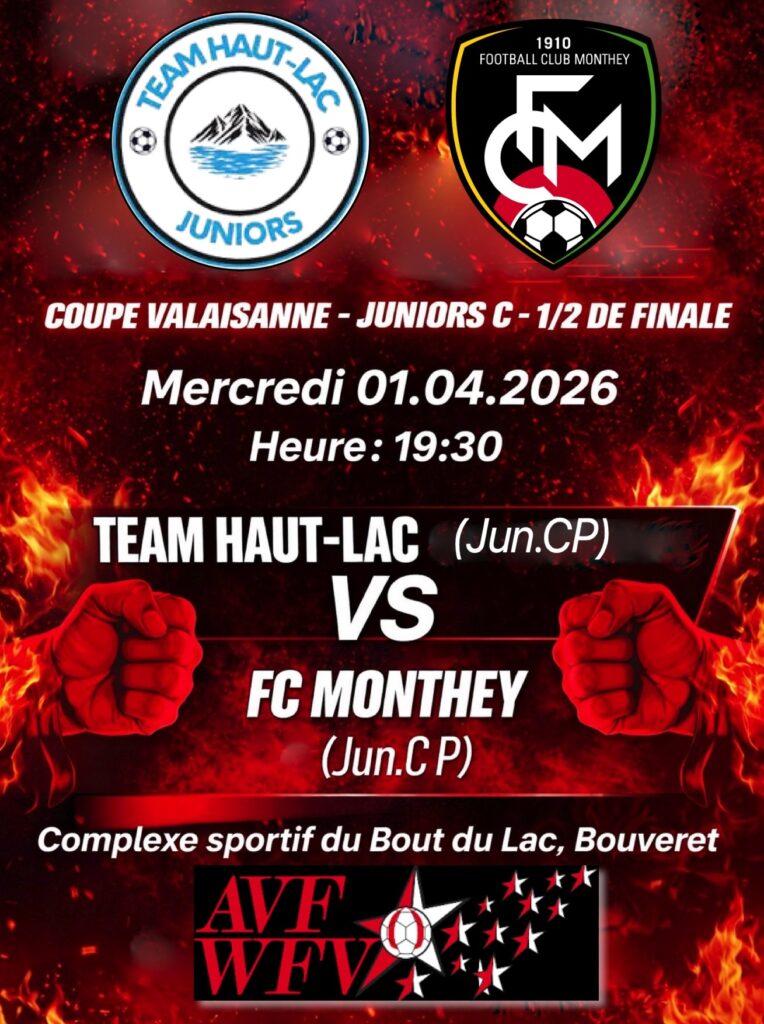 EvènementsMatchsCOUPE VALAISANNE-1/2 FINALE JUNIORS Cil y a 3 joursMercredi soir au Bouveret, place à une demi-finale qui s’annonce brûlante!